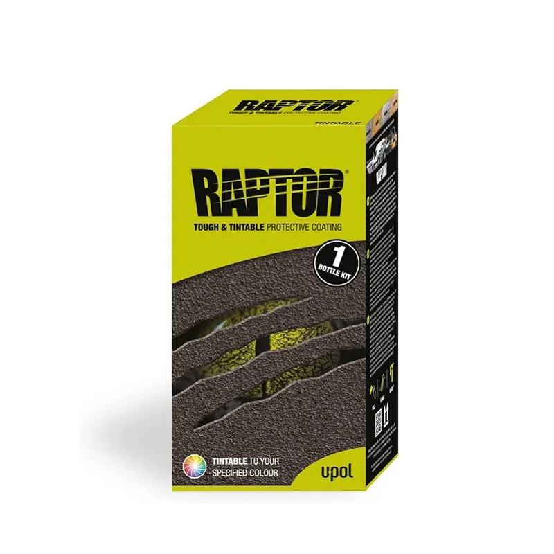 Raptor U-POL to natryskowy środek ochronny. Niezwykle mocna i wytrzymała powłoka uretanowa 2K. Produkt dający efekt struktury występuje w trzech wariantach: czarny, biały i do barwienia.