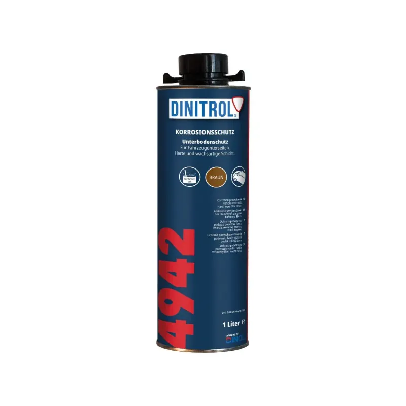 DINITROL 4942 to uniwersalny produkt ochronny na bazie bitumu, stosowany do całkowitego lub częściowego zabezpieczania podwozi pojazdów. Tworzy trwałą, elastyczną powłokę odporną na uderzenia kamieni, wilgoć oraz trudne warunki eksploatacyjne.