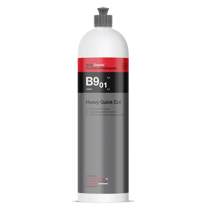 ➡️ Koch Chemie Heavy Quick Cut B9.01 to wysokowydajna pasta polerska o bardzo dużej sile cięcia, przeznaczona do szybkiego usuwania śladów po szlifowaniu oraz defektów lakierniczych. Dzięki specjalnej formule umożliwia łatwą i czystą pracę – bez nadmiernego pylenia i rozpryskiwania.