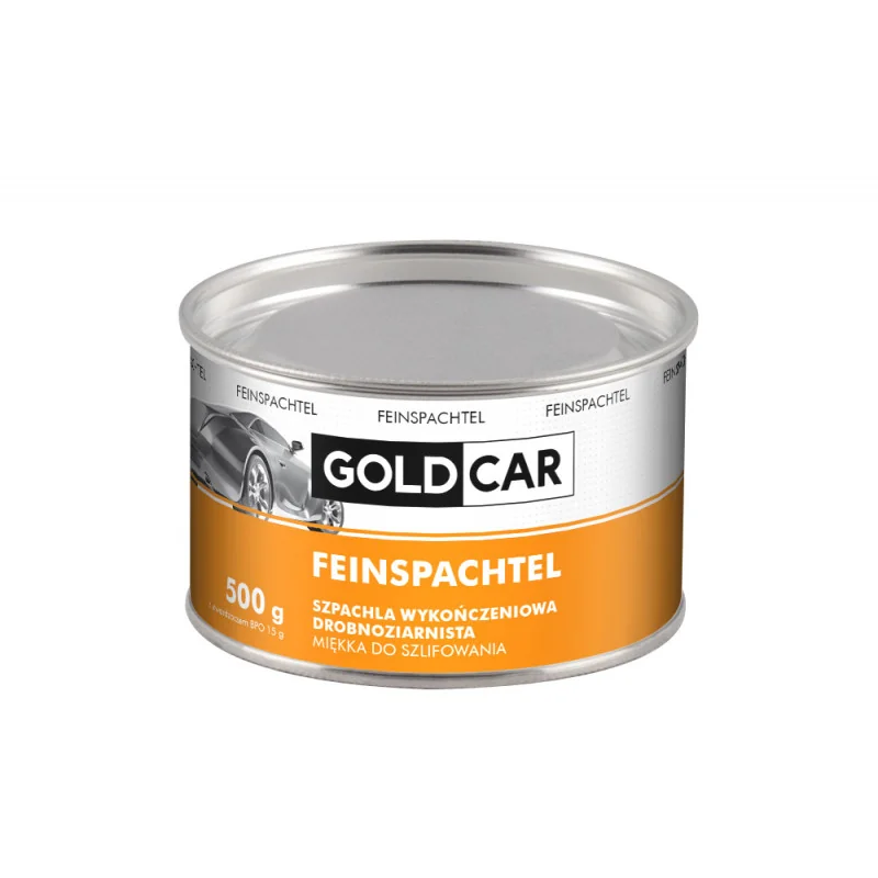 GOLDCAR Szpachla FEIN Drobnoziarnista szpachla wykończeniowa. Charakteryzuje się szczególną łatwością modelowania w cienkich warstwach i łatwością obróbki wysokimi granulacjami materiałów ściernych P150 - P320 w efekcie czego uzyskujemy najwyższą jakość powierzchni szpachli i powłoki lakierowej w obrębie naprawy.